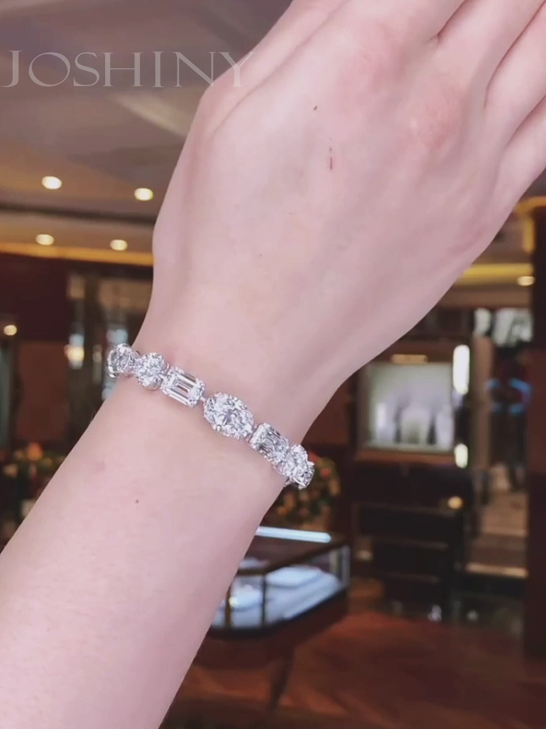 This is a fantastic bracelet. 38ctw multi-cut white stones interlaced. Sparkling halo, 360° shining around your finesse. The bracelet is made of 925 silver throughout, with thick gold plating, which makes the luster last longer compared to other single layer plating. The style is personalized and simple, bringing more possibilities for your fashion collocation.