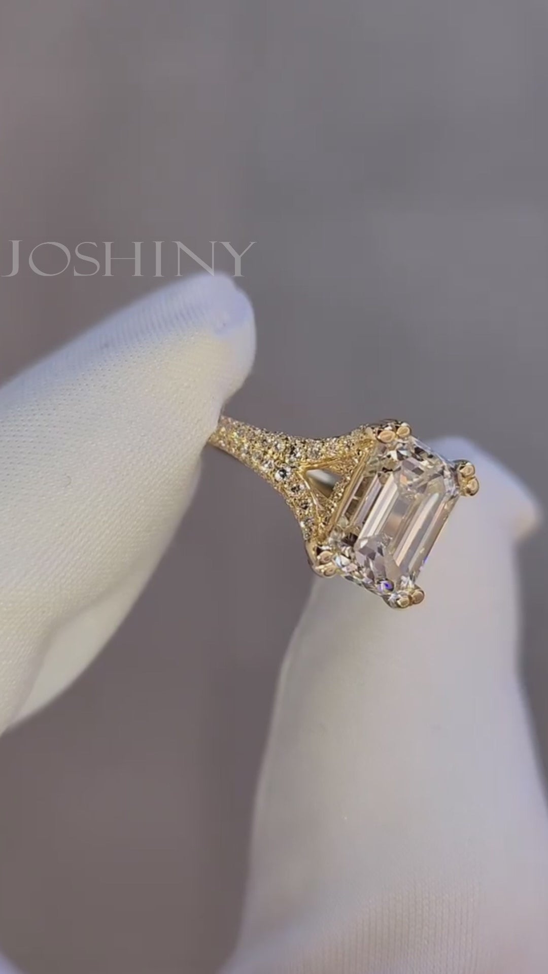 3ct Emerald Cut Split Shank Engagement Ring -joshiny