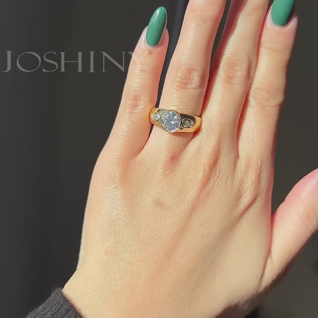 3ct French Vintage Yellow Gold Ring with Diamonds -joshiny