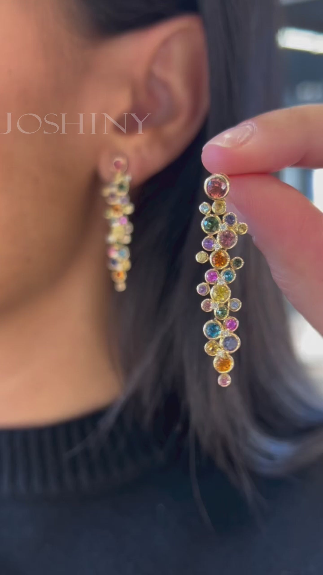 3ct Milky Way Round Cut Elongated Cluster Colored Stone Earrings