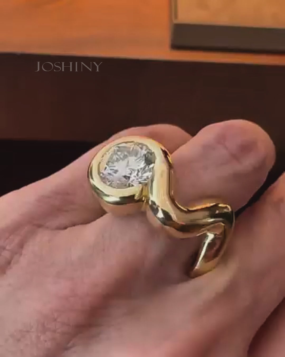 This gold ring features a unique design and beautiful lines, with a gold band encircling the dazzling gemstone. Wearing it exudes elegance and personality, making it a work of art for your fingertips.