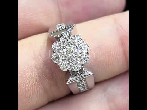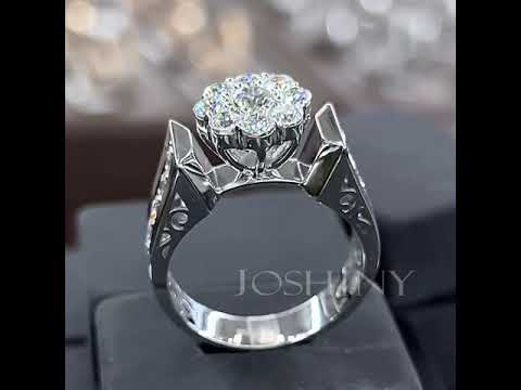 3ctw Round Cut Ring Arm Engraved Stamped Gemstone Ring -JOSHINY