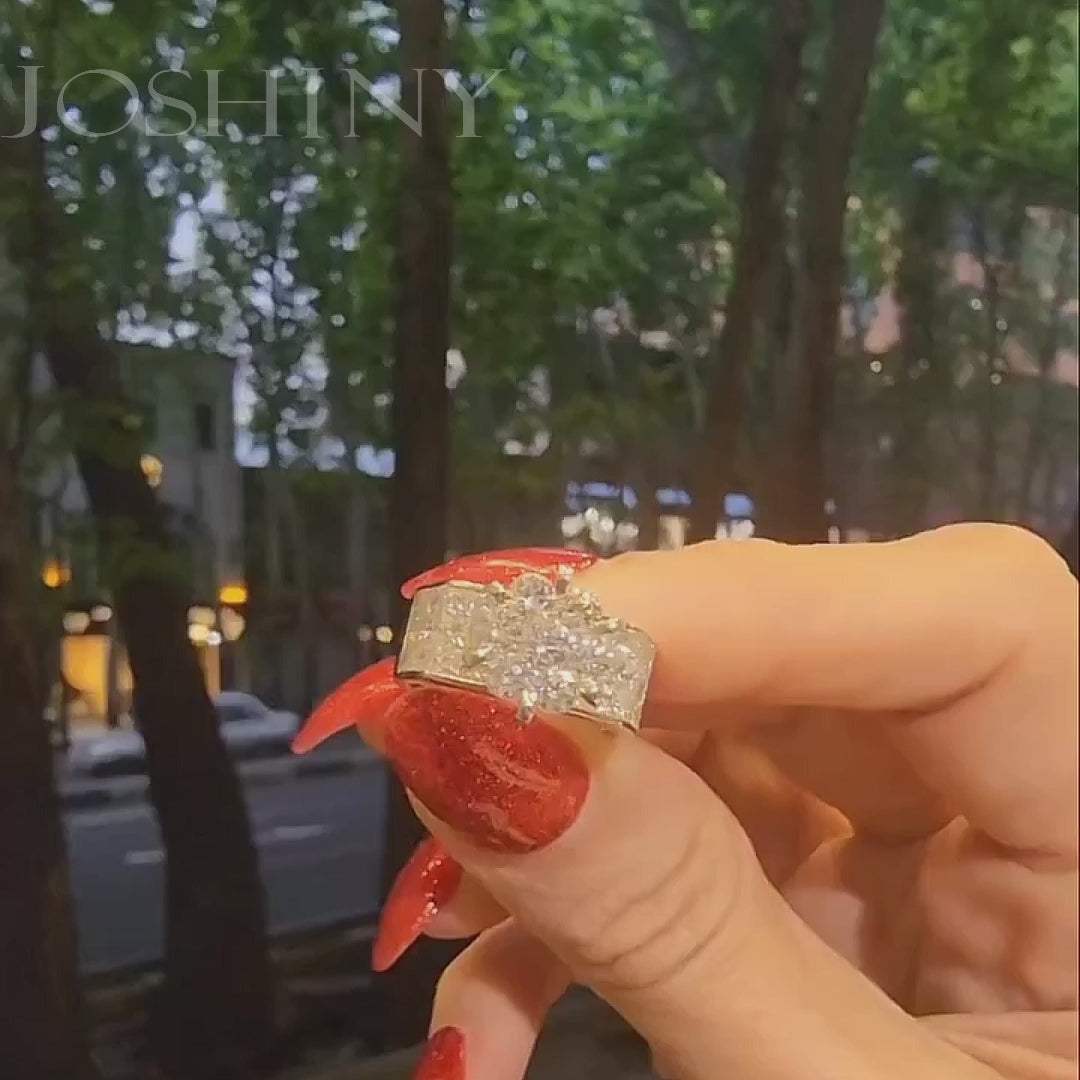 Unique cocktail rings without huge stones. The hard lines of the design paired with the soft flowers create this unusual ring. Featuring round cut white stones with a total weight of approximately 3 carats. Absolutely eye-catching! The ring is made of 925 silver throughout, with thick gold plating, which makes the luster last longer compared to other single layer plating. The style is personalized, bringing more possibilities for your fashion collocation.