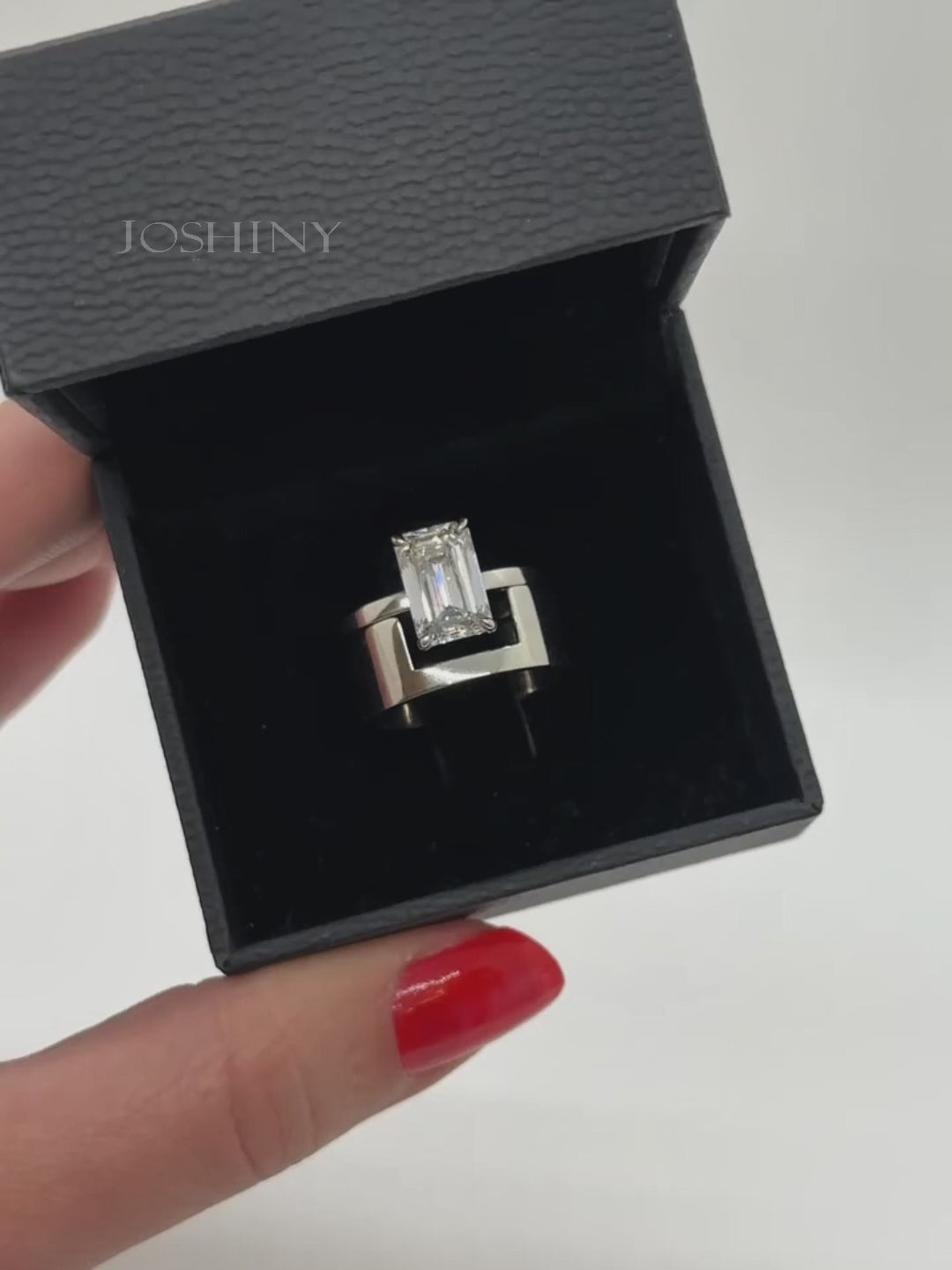 This uniquely crafted ring, made with exquisite workmanship, perfectly blends modern architectural aesthetics with classic emerald-cut gemstones. The wide, silver band is stylishly designed, securely supporting the dazzling gemstone and showcasing the wearer's exceptional taste and unique style. Whether for everyday wear or special occasions, it will undoubtedly make you the center of attention.