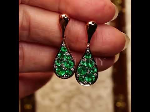 2ctw Vibrant Round Cut Emerald Dangle Earrings -JOSHINY