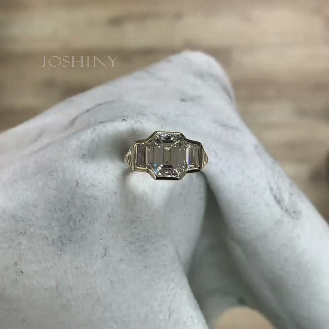 3Ctw Vintage Emerald Cut Men's Ring-JOSHINY