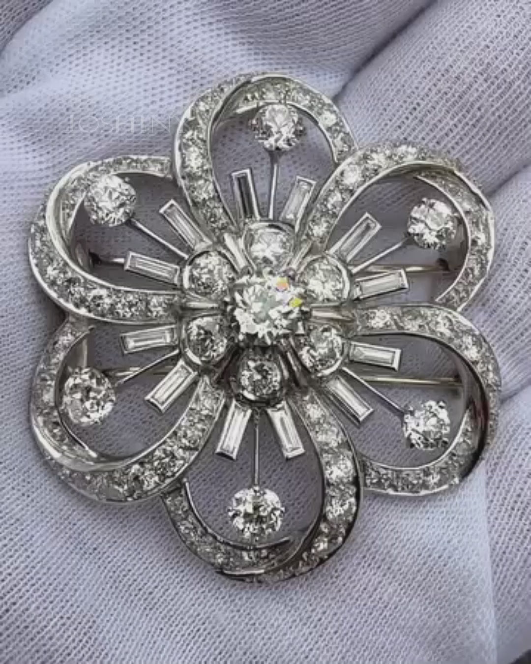 This exquisite gemstone flower-shaped brooch, set with dazzling gemstones, radiates timeless elegance. Adorning your attire and showcasing refined taste, it's the perfect choice for important occasions.