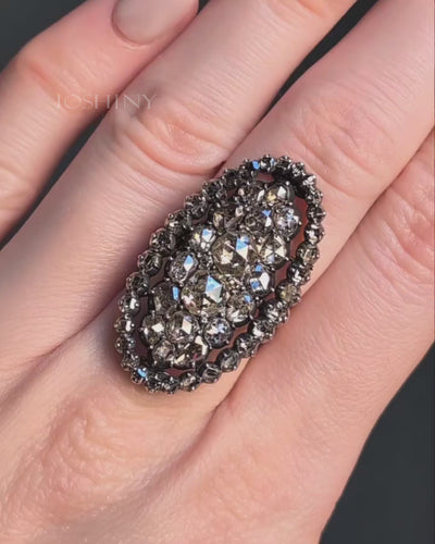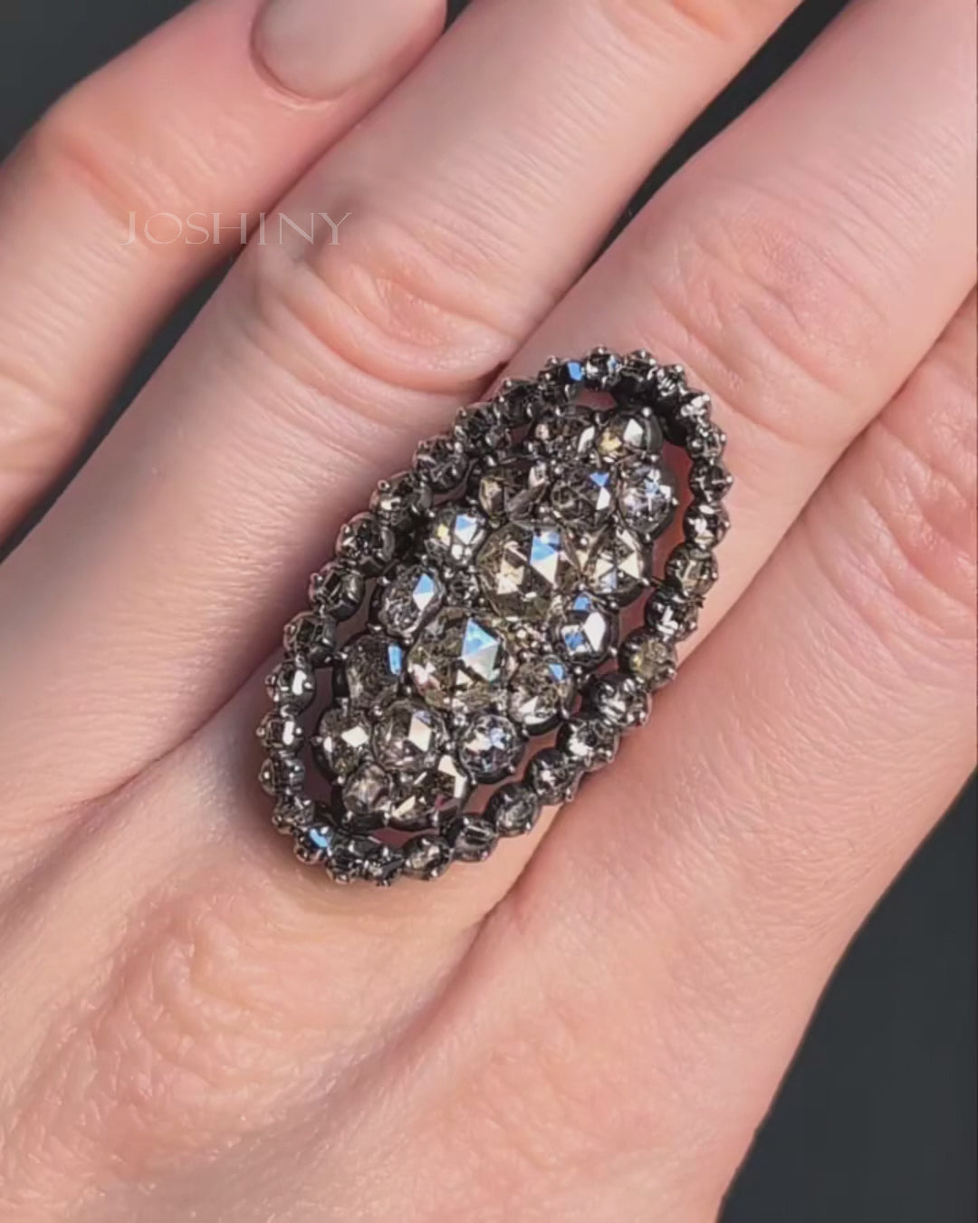 This vintage-style oval gemstone ring, featuring a round cut and multiple gemstones, exudes captivating brilliance and showcases a noble and elegant temperament. A unique design, it's a piece to be treasured.