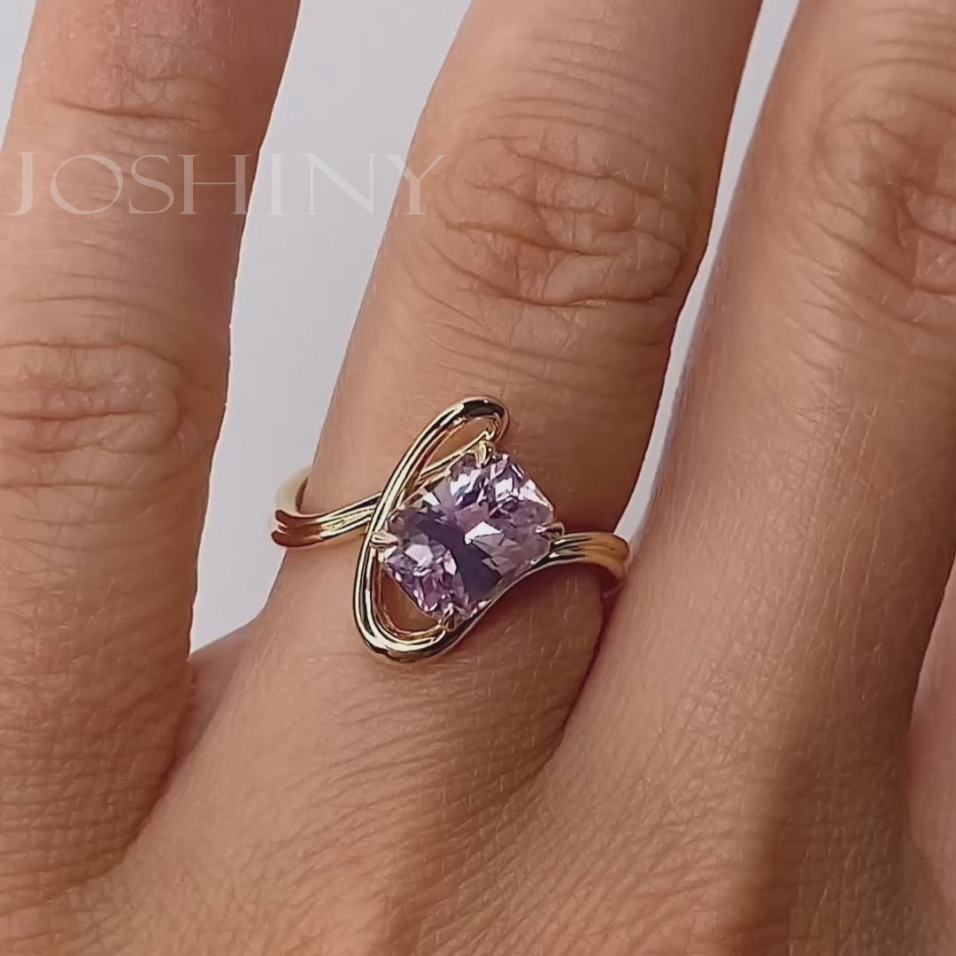 4.0ct Octagonal Cut Pink Gemstone Organic Linear Band Diamond Engagement Ring -JOSHINY