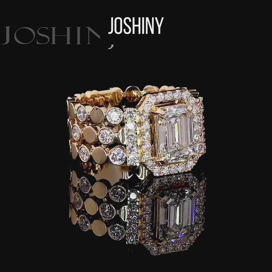 4.0ctw Emerald Cut Gemstone Gold Bead Alternating Multi-Row Gemstone Ring -JOSHINY