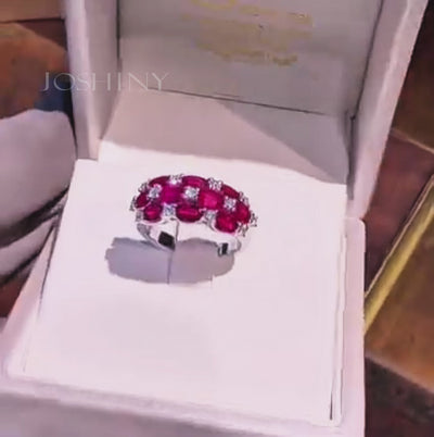 This exquisite ruby and diamond ring features a luxurious design, with an oval ruby set with sparkling white gemstones, showcasing a woman's noble and elegant temperament. Suitable for important occasions, it highlights exceptional taste.