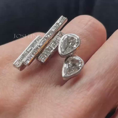 4.0Ctw Pear-shaped rectangular gemstone asymmetrical wing ring-joshiny
