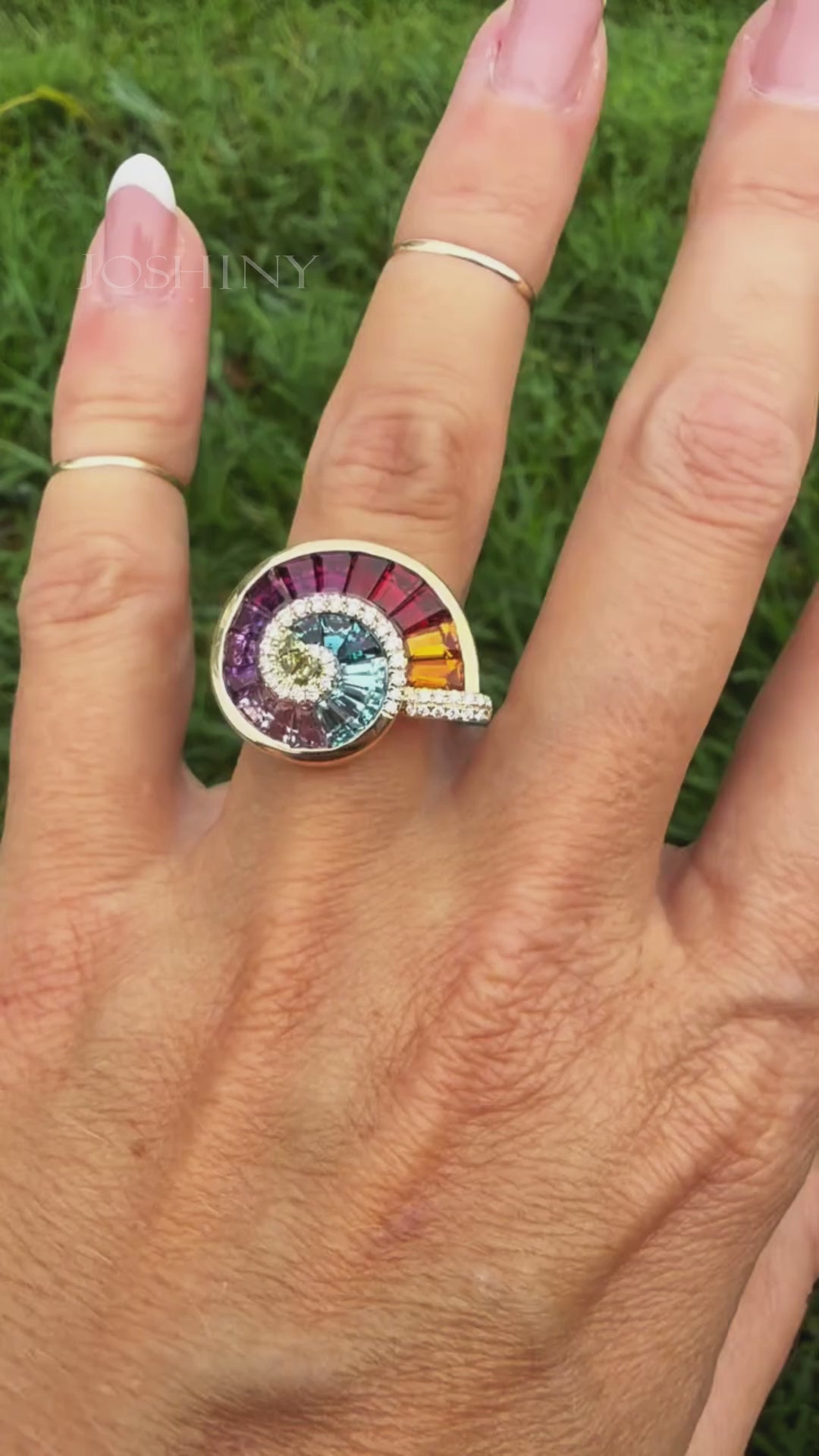 4.0Ctw Rainbow Gradient Gemstone Ring-JOSHINY