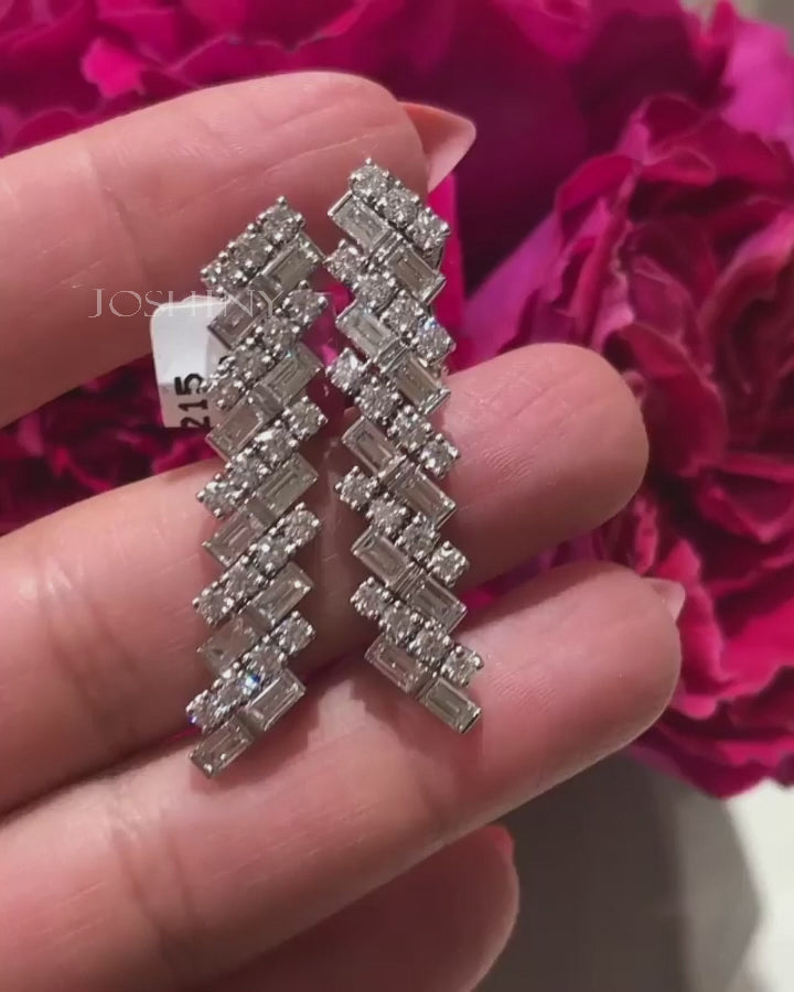 4.0Ctw Rectangular Cut Drop Earrings-JOSHINY