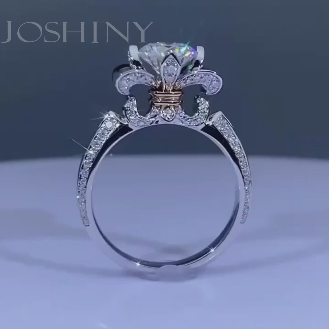 4.0ctw Round Cut Flower 925 Silver Platinum Plated Engagement Ring -JOSHINY