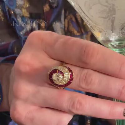 This ruby ​​and diamond ballet ring is crafted with exquisite skill. Rubies and gold intertwine in elegant swirling patterns, resembling the flowing skirt of a ballerina, dazzling and showcasing luxurious and unique taste. An art form for your fingertips, an eternal allure.