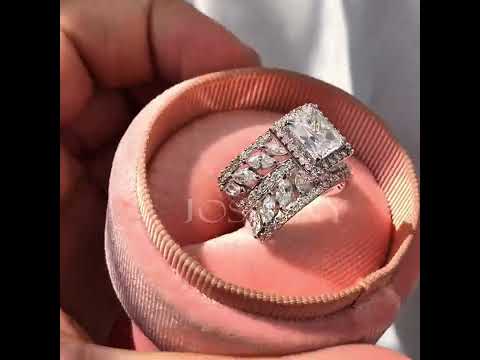 8.1ct Emerald and Round Cut Cocktail Engagement Ring -JOSHINY