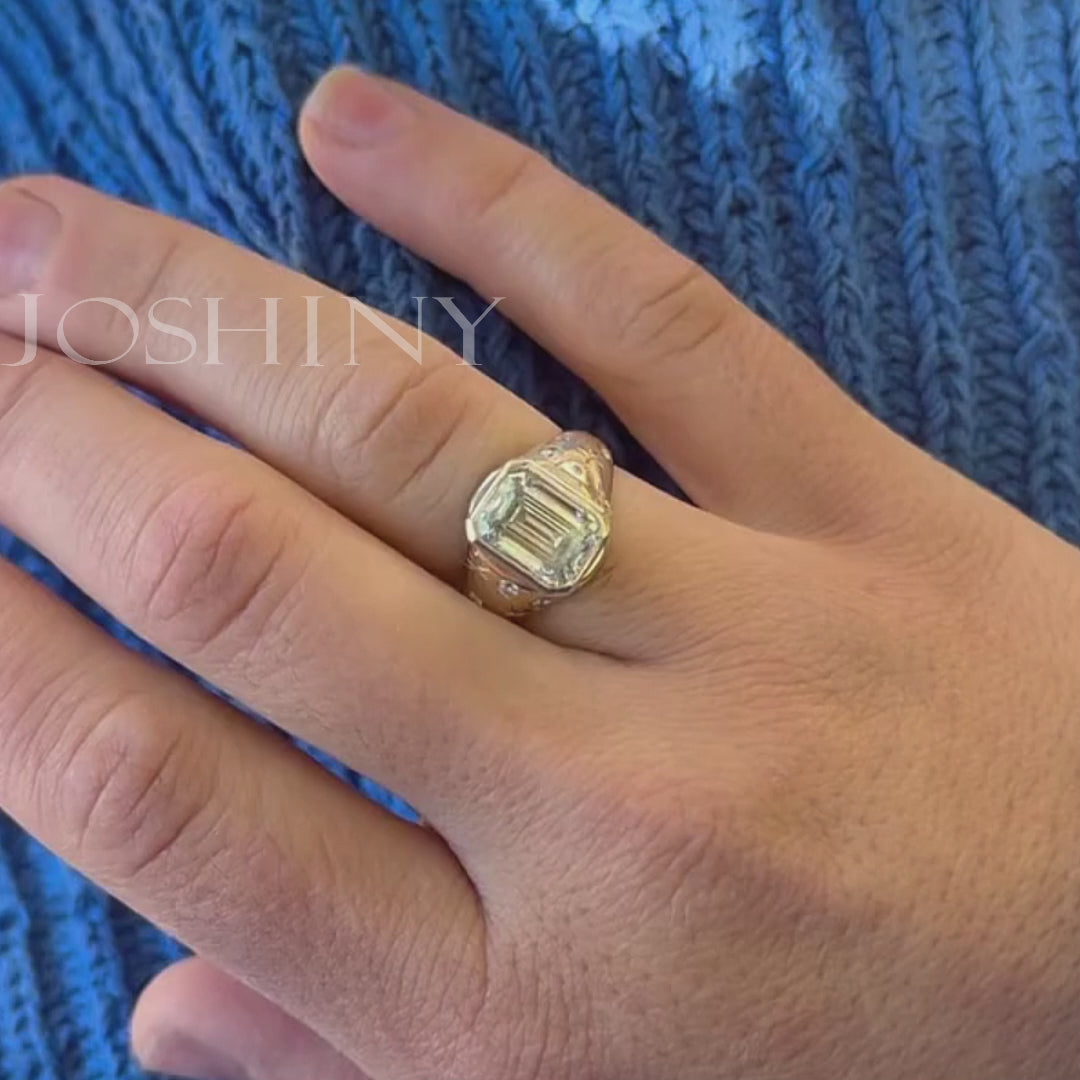 4.32ctw Emerald Cut Starry Sky Pattern Ring-JOSHINY