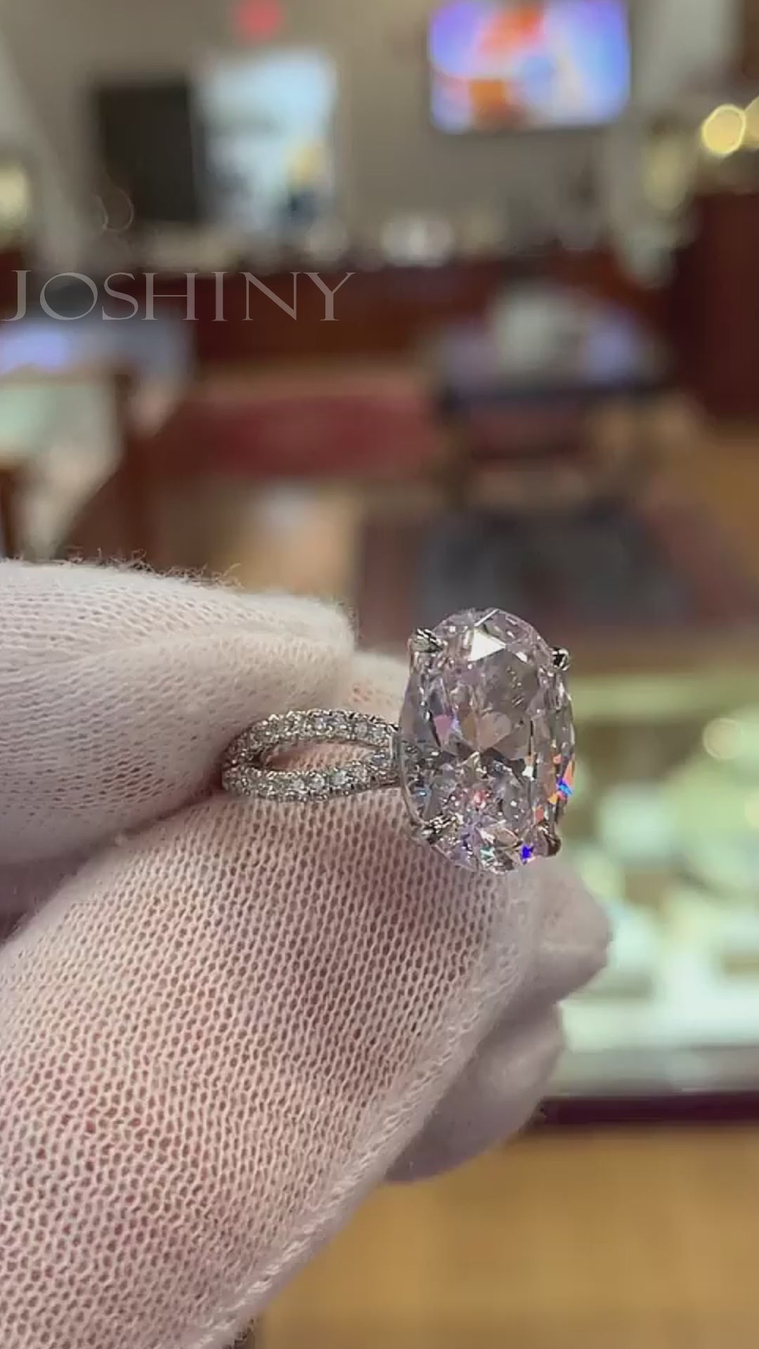 4.5ct Handmade Oval Cut Split Ring Wall Diamond Engagement Ring -JOSHINY
