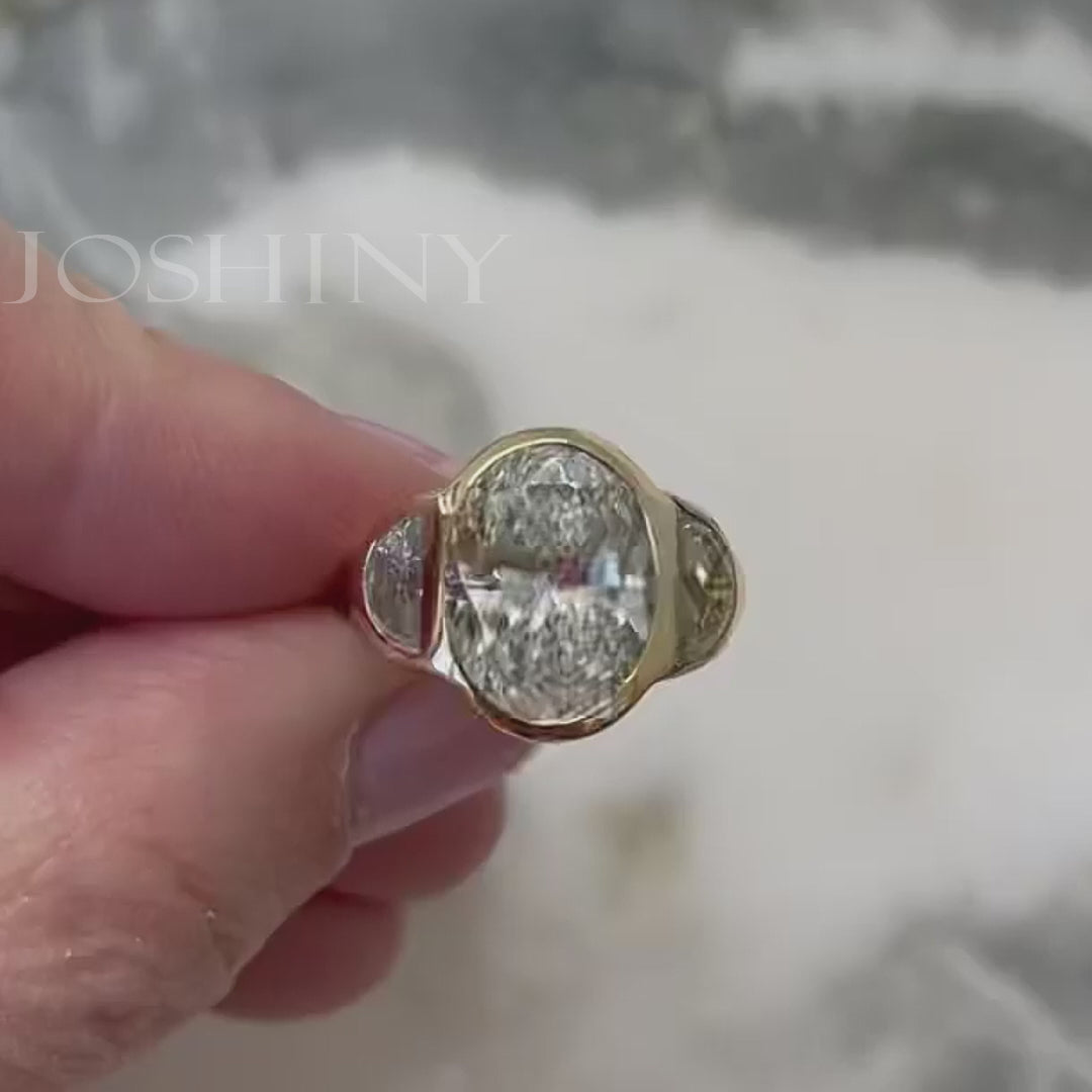 4.5ct oval cut three stone bezel set engagement ring -JOSHINY