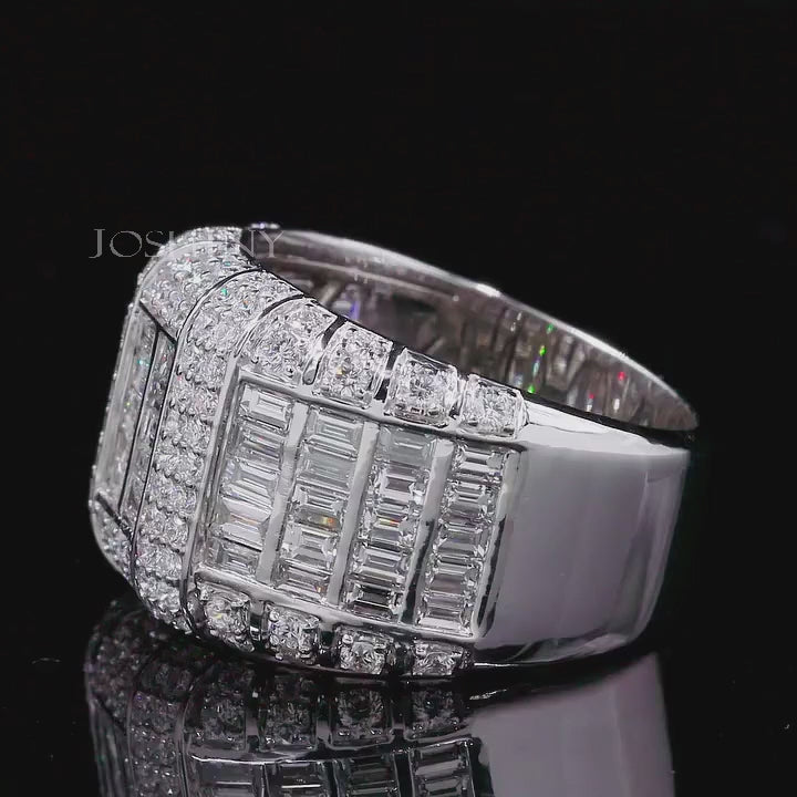 🔥🔥A stylish and confident men's gemstone ring, crafted for gentlemen of exceptional taste. 💍It skillfully blends balanced and refined rectangular and round cuts, dazzlingly brilliant with clean, powerful lines, exuding nobility and composure. 💍✨ This ring showcases a gentleman's value and status. Come and explore this uniquely crafted and exquisite gemstone ring.
