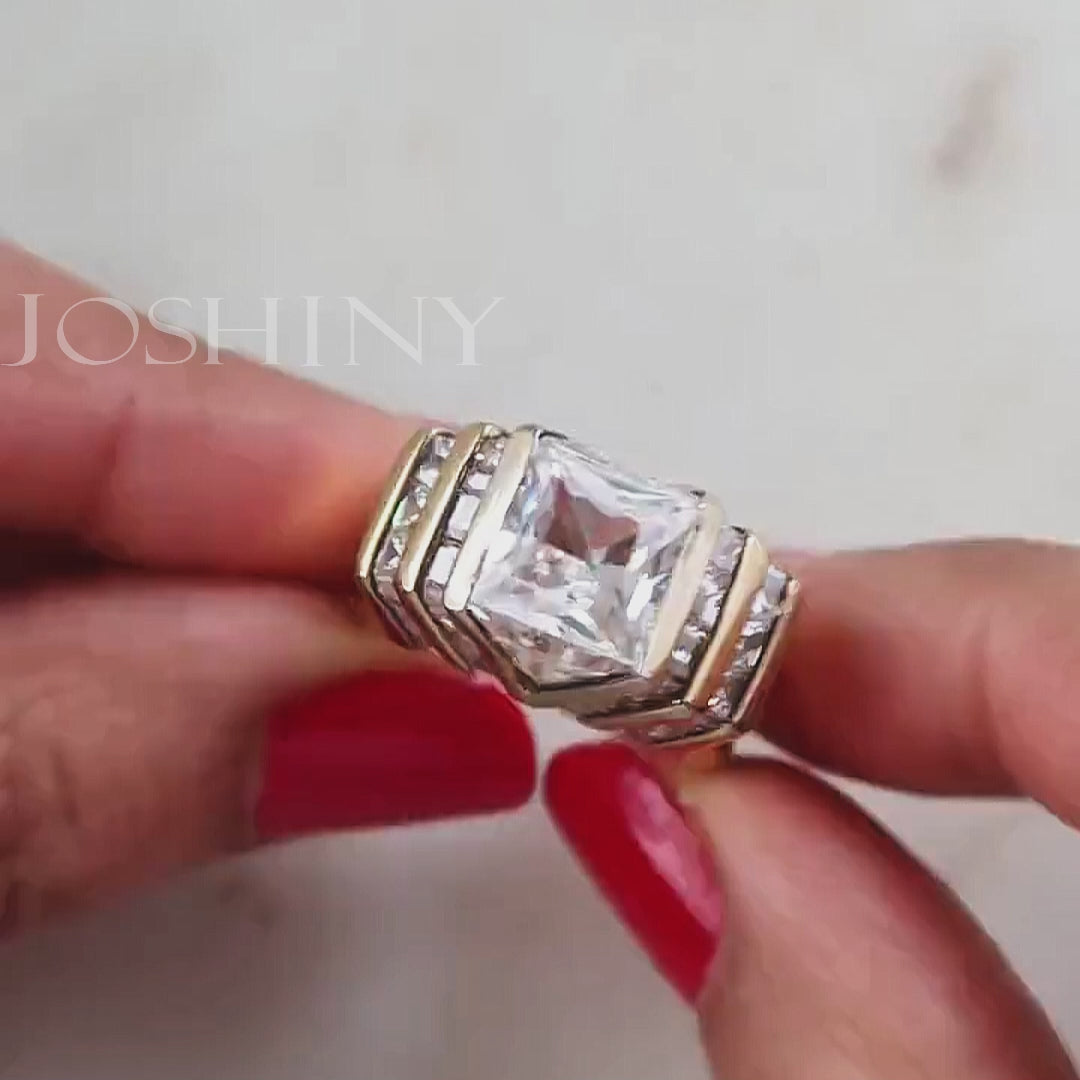 4.5ctw vintage-style square center stone groove setting engagement ring-JOSHINY