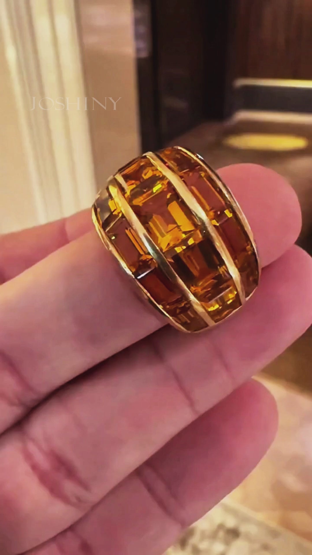 This exquisite gold ring, set with dazzling yellow sapphires, boasts a unique design that exudes elegance. Its radiant shine and versatile style make it the ideal choice to enhance your personal charm. Wearing it will make you the center of attention.