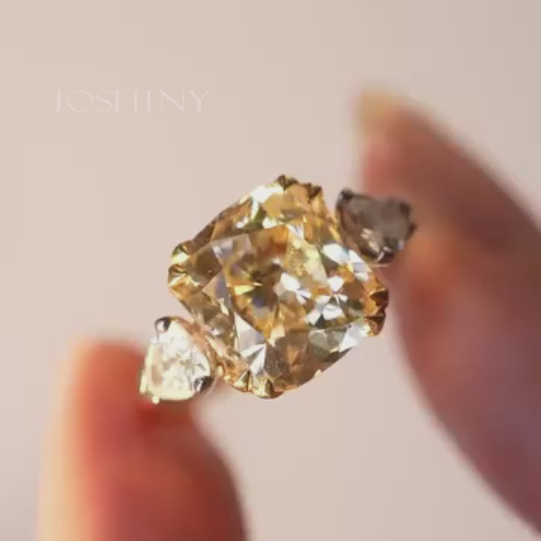 4.97Ctw Cushion-cut Yellow Gemstone Three-Stone Ring-JOSHINY
