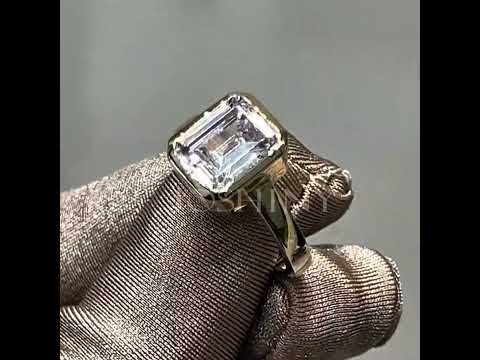 4ct Emerald Cut Solitaire Bezel Ring -JOSHINY