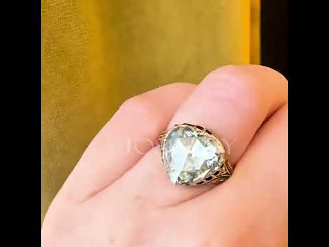 4ct Heart Rose Cut Openwork Leaf Gemstone Engagement Ring -JOSHINY