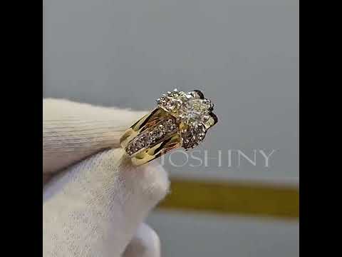 4ct Round Cut Bicone Engagement Ring with Diamonds -JOSHINY