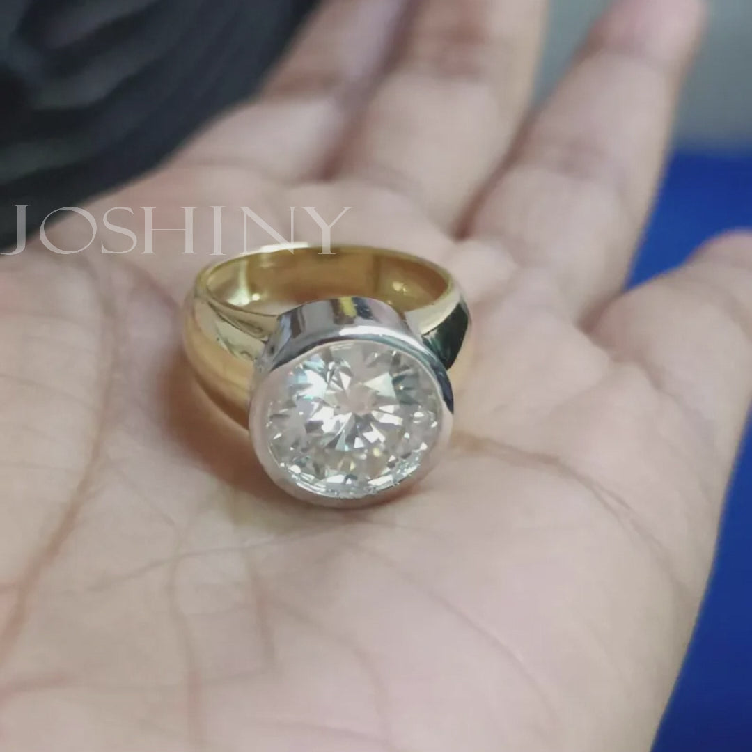 4Ct Round Stone Bezel Engagement Ring-JOSHINY