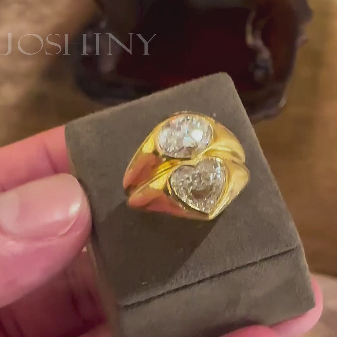 5.05ctw Heart and Oval Cut North and South Double Stone Ring -JOSHINY