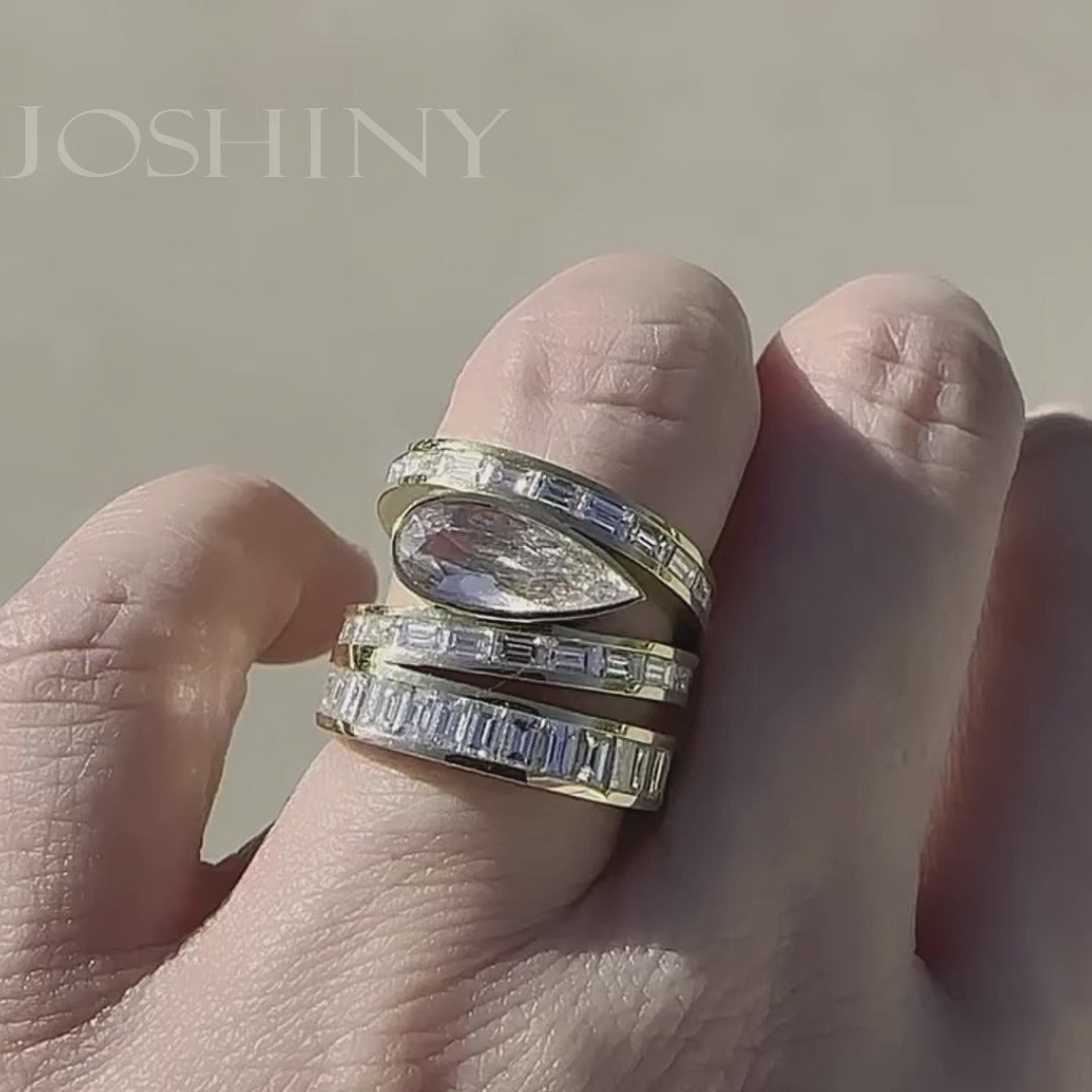5.0ctw Pear Baguette Cut Three Ring Gemstone Ring -JOSHINY