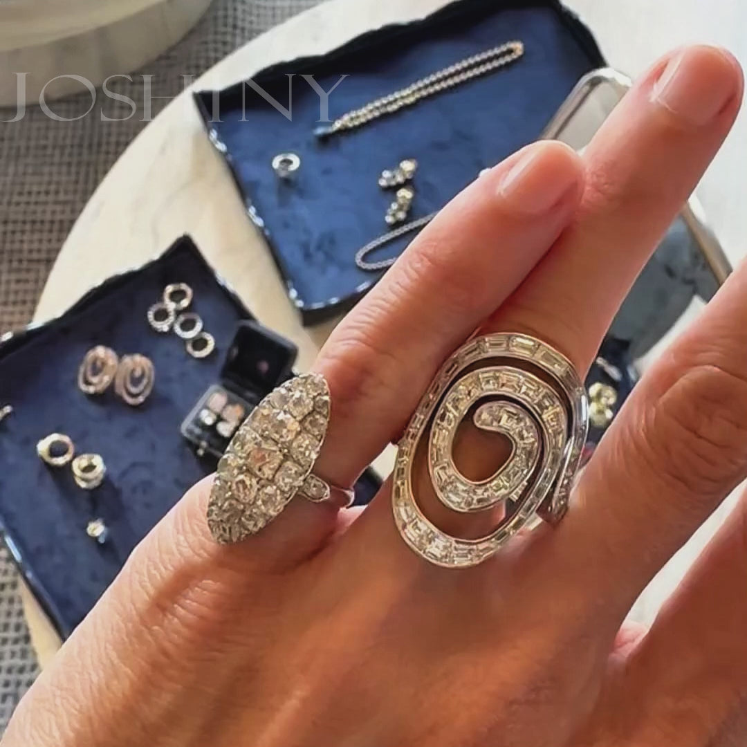 5.14ctw Square Cut Spiral Fluted Gemstone Ring -JOSHINY