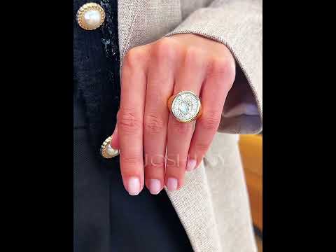 This is a striking engagement ring. Stamp shape, 5.5 ctw oval and round cut white stone pave set, huge and sparkle and eye-catching. Can be worn by both men and women. Â The ring is made of 925 silver throughout, with thick gold plating, which makes the luster last longer compared to other single layer plating. The style is personalized and simple, bringing more possibilities for your fashion collocation.
