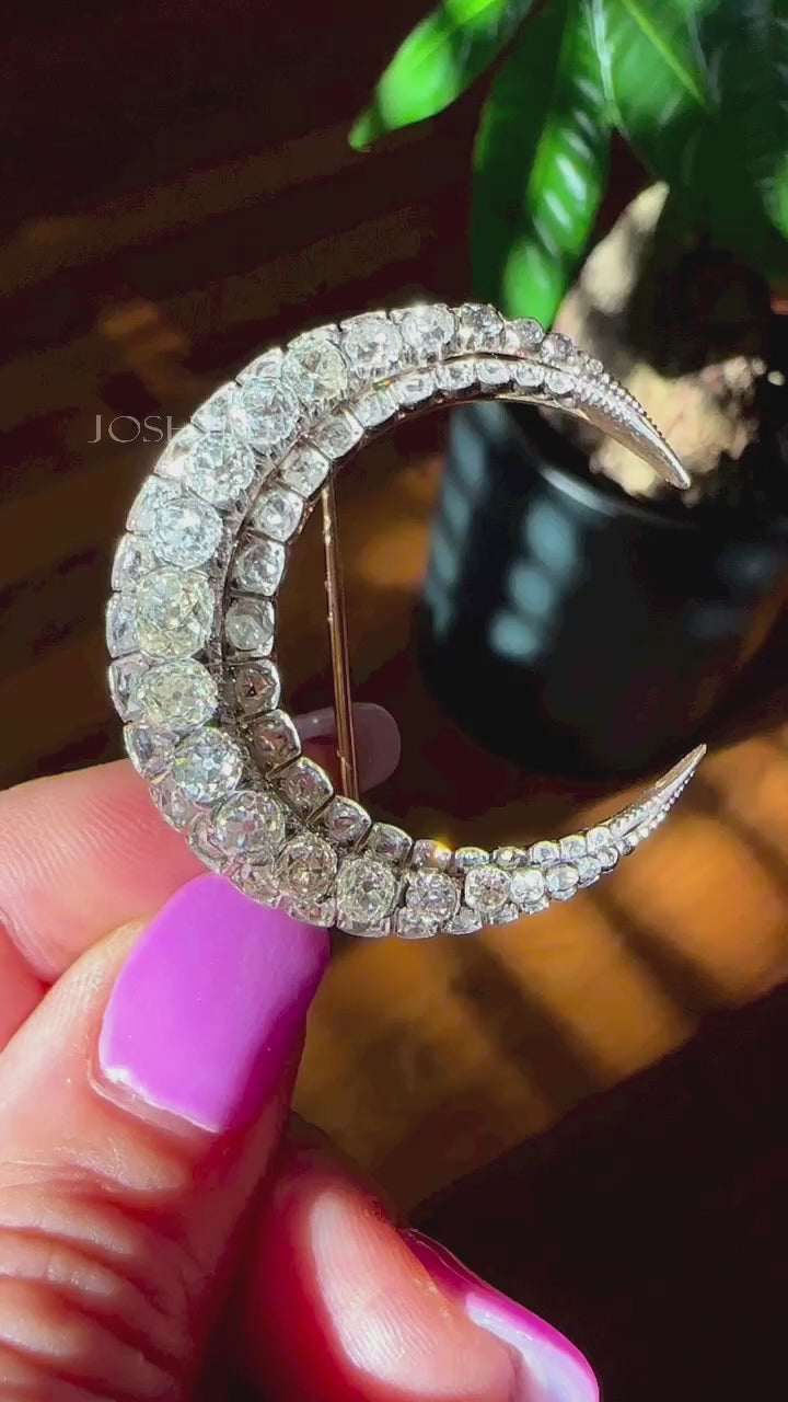 5.5ctw Old Mine Cut Crescent Moon Brooch-JOSHINY