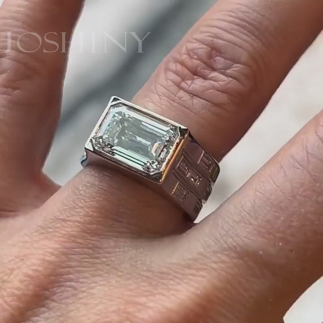 5.6ct Emerald Cut East-West Set Engagement Ring -JOSHINY