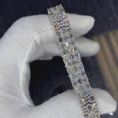 50 CTW Round and Emerald-Cut Three-Row Gemstone Bracelet-JOSHINY