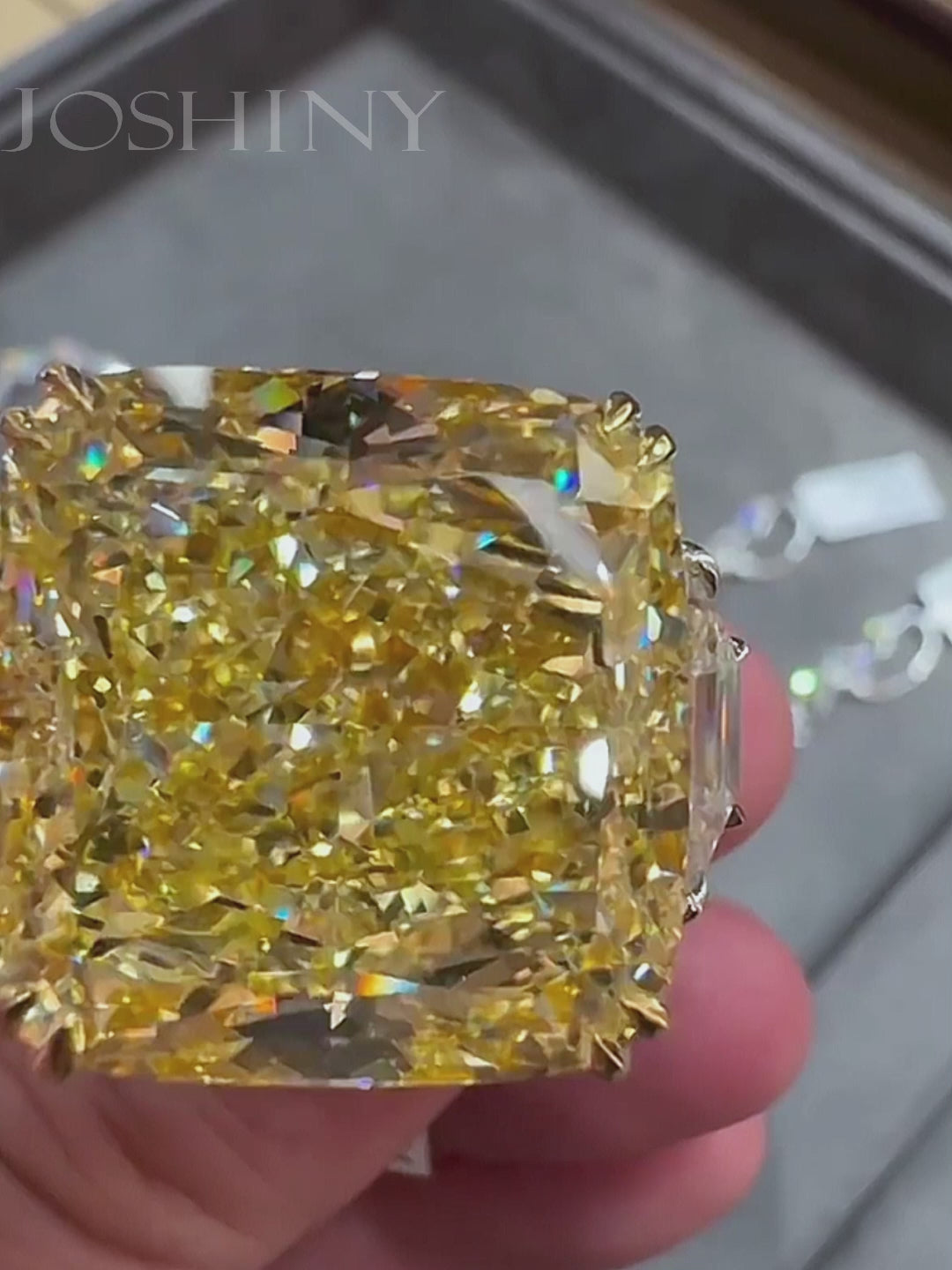 50 ctw Radiant Cut Yellow Gemstone Three Stone Engagement Ring -joshiny