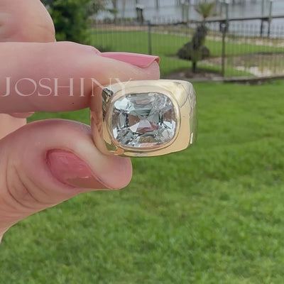 5ct Cushion Cut Emerald and Aquamarine Cigar Ring-JOSHINY