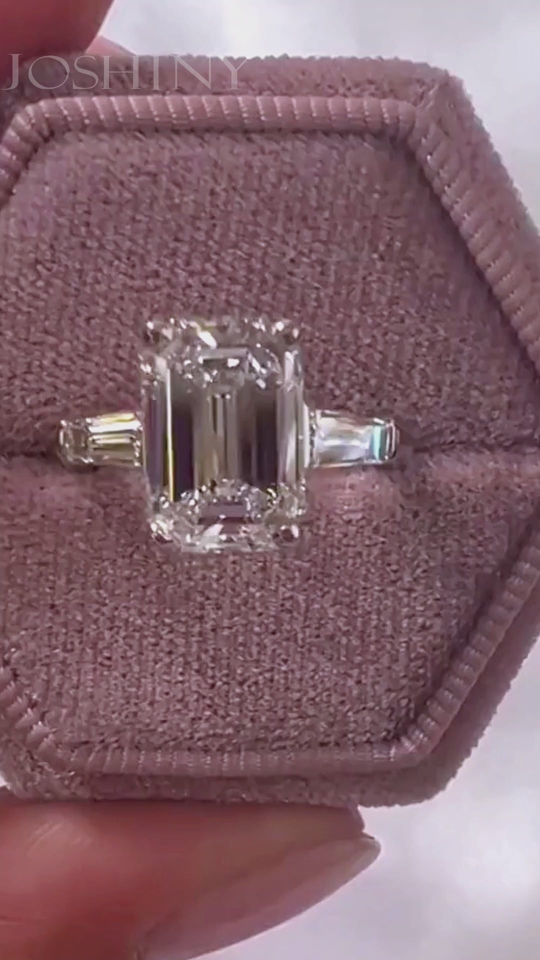 This is a three stone design ring with in the center section with an emerald cut. Elegant and simple. The ring is made of 925 silver throughout with thick gold plating, which makes the luster more lasting compared to other single layer plating. Classic style, bring more possibilities for your fashion collocation.