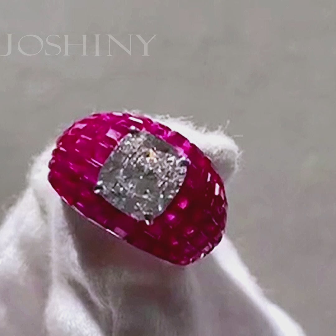 5 ctw Invisible Set Ruby And White Gemstone Cushion Cut Ring