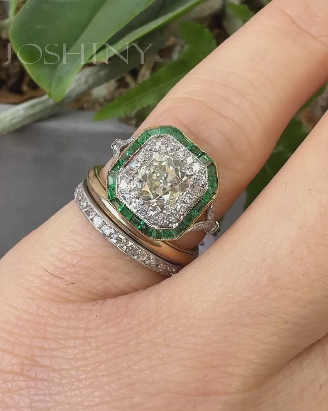 Love the gemstone band with the emerald. Excellent band pairings with each other as well.