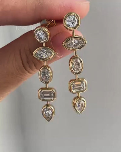 These gold earrings, inlaid with multi-shaped gemstones, are dazzling. The combination of teardrop, emerald, marquise, and round cuts creates an elegant and unique charm, illuminating every beautiful moment.
