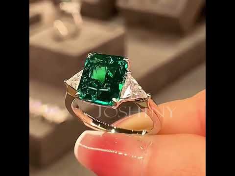 5ctw Radiant Cut Emerald Green Three Stone Ring -JOSHINY