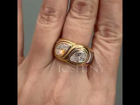 6.05ct Bezel Set Double Pear Shaped Stones Engagement Ring -JOSHINY