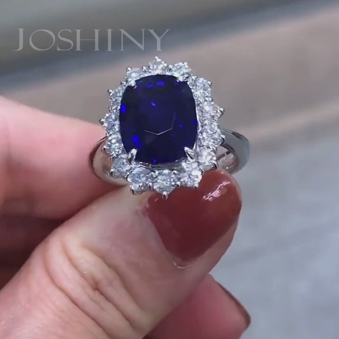 6.5ct Sapphire Cushion Cut Daisy Engagement Ring