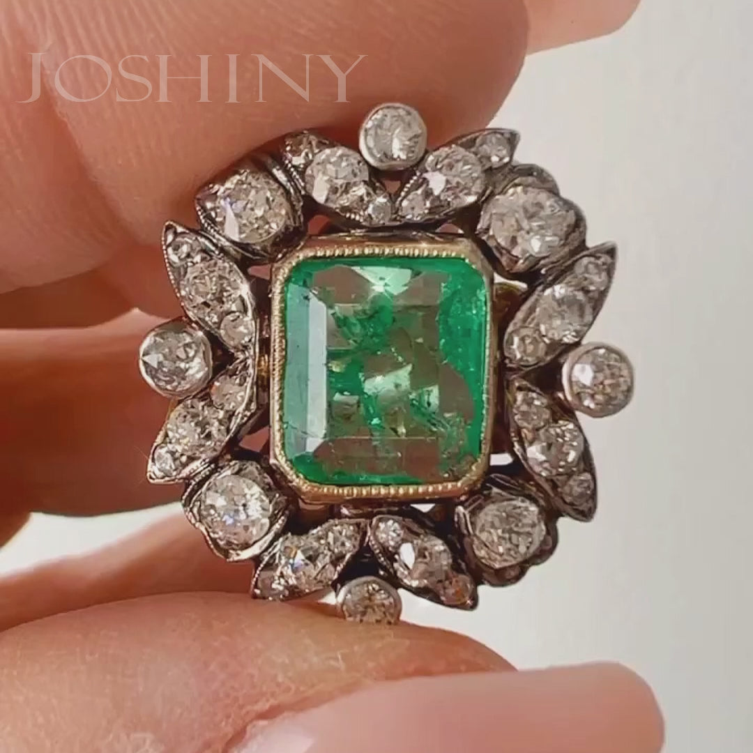 6.6ct Vintage Emerald Engagement Ring -JOSHINY