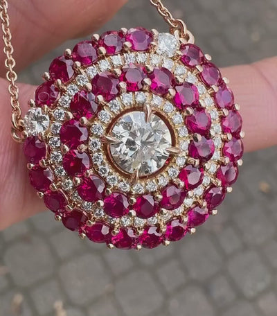6.82Ctw Multi-layered Ruby Pendant Necklace-JOSHINY